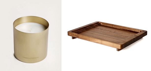 Bassam Fellows Designer Brushed Brass Candle and Carved Walnut Stacking Tray