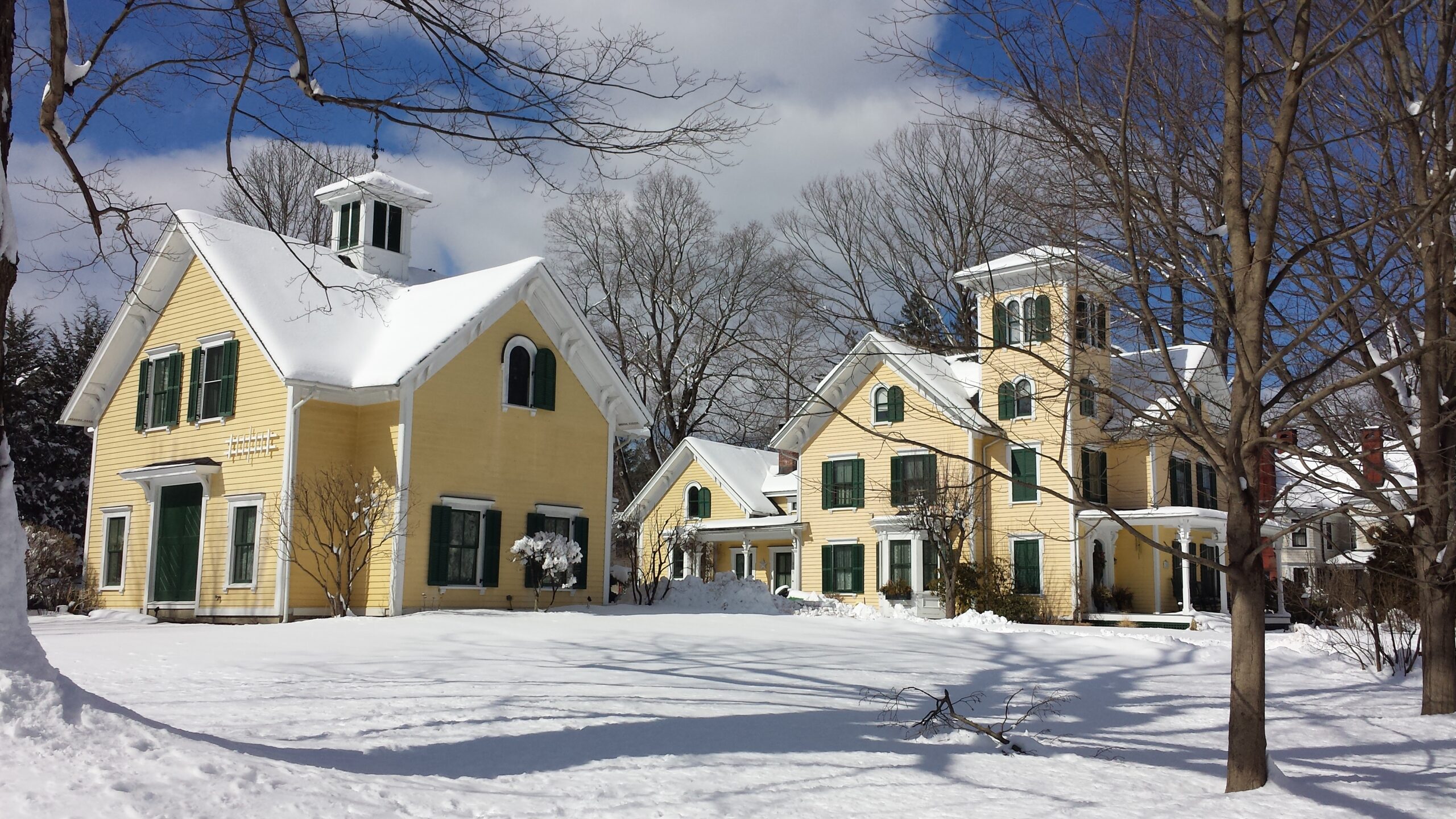 “Lewis H. Bailey (1818 – 1899) was a local banker, merchant, and hotel proprietor in Ridgefield, Connecticut. He had this stunning Italianate Villa home built on Main Street [in the mid-1860s]. Bailey was savvy in realizing the upcoming development boom in town as wealthy New Yorkers began to arrive in town to build summer houses to escape the cramped city living and polluted air, and he began to sell off land and develop streets in the village. To house some shorter-term summer residents, Bailey constructed and operated the old Bailey Inn on a lot adjacent to his own home. The inn was torn down in the 1920s as the town’s dynamic as a summer town began to change with more year-round residence. The Italianate Villa is a lasting legacy of Bailey and his impact on the town. The home with its square tower and detached carriage house are in a great state of preservation and significantly contribute to the character of Main Street.” Buildings of New England (April 2022)